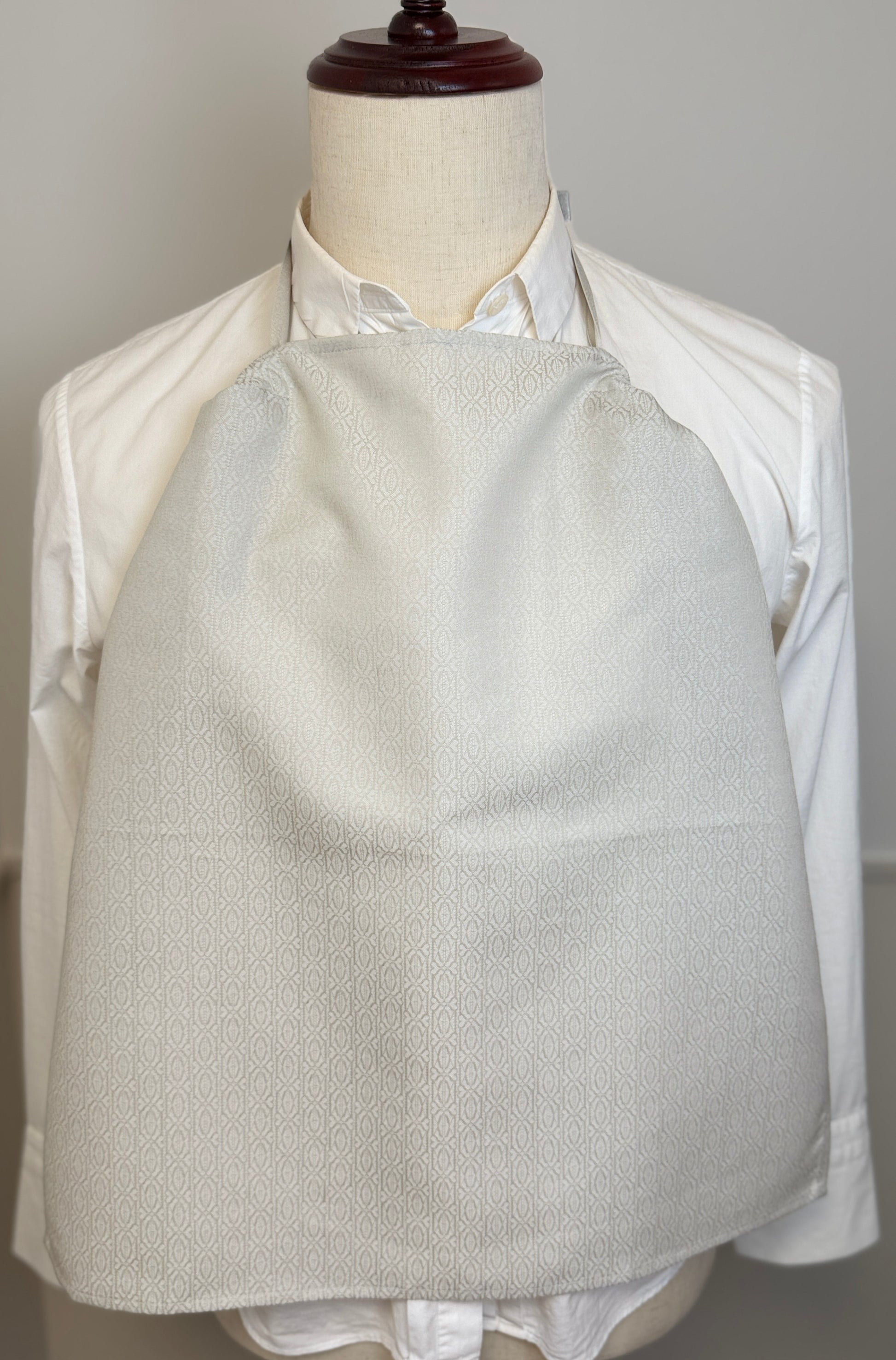 上品に汚れをガードする『布帛の騎士』。ハンカチにもエプロンにもなる2WAYデザインで、食事中の不意な食べこぼし対策に活躍します。高品質な国産生地と洗練されたデザインは、大切な方へのギフトにも最適。